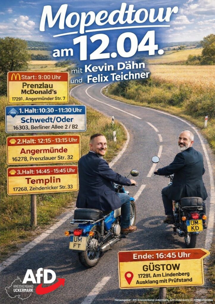 Kommt zum Startpunkt: Wir treffen uns in Prenzlau bei MC Donalds um 09:00 Uhr. Kommt vorbei auf einen kurzen Schnack, bevor es losgeht!